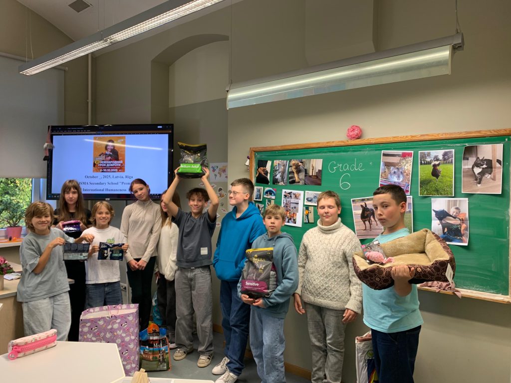 Stundu laikā skolēni uzzināja vairāk par dzīvnieku patversmēm, dzīvnieku aprūpi un to, cik svarīgi ir nepalikt vienaldzīgiem pret tiem, kuri paši par sevi parūpēties nevar. Kopā runājām par atbildību, līdzjūtību un to, kā ikviens no mums var palīdzēt – sākot no ziedojumiem līdz brīvprātīgajam darbam vai vienkārši rūpīgākai attieksmei pret visu dzīvo.