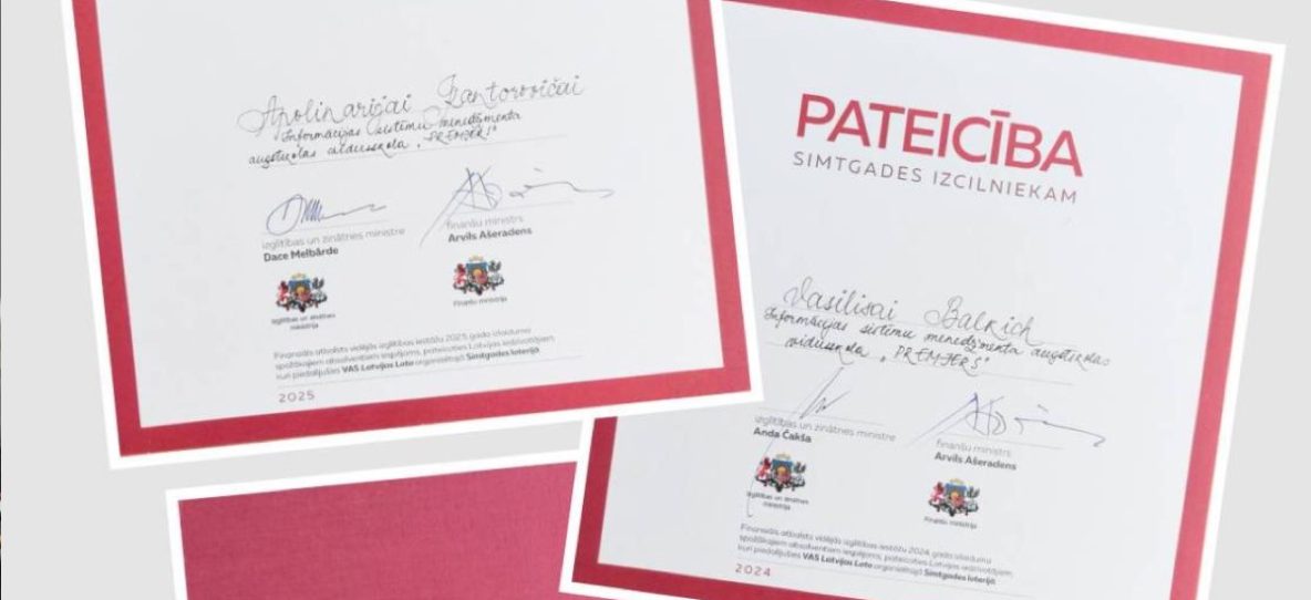 Аполинария Канторович и Василиса Балкич, выпускници 2024 года, получили стипендию Латвийского столетия «Для выдающегося студента столетия”!