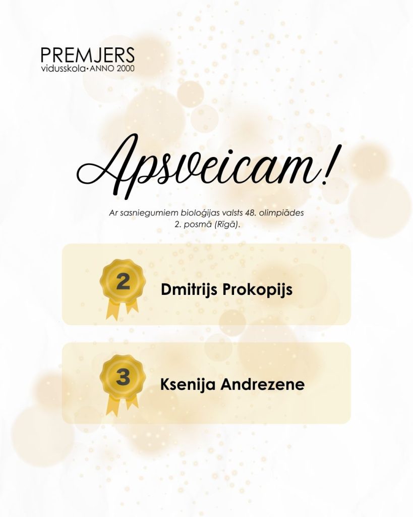 Sveicam mūsu skolēnus ar teicamiem panākumiem Rīgas valstspilsētas pašvaldības bioloģijas valsts 48. olimpiādes 2. posmā!
